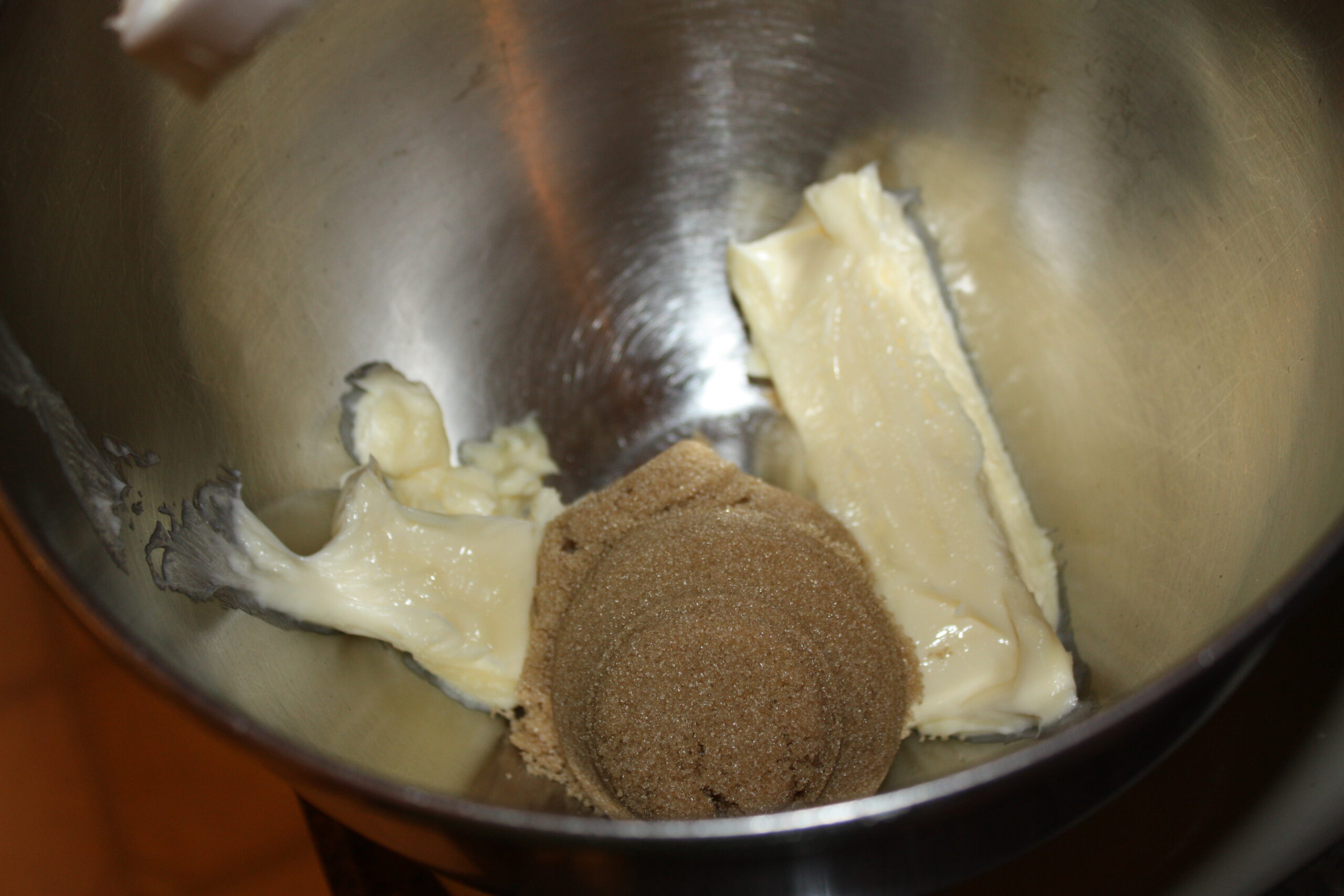Preheat oven to 375 degrees.  Beat butter or margarine and sugars together until light and fluffy.