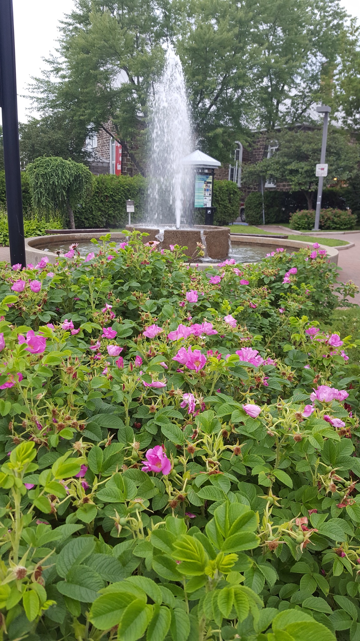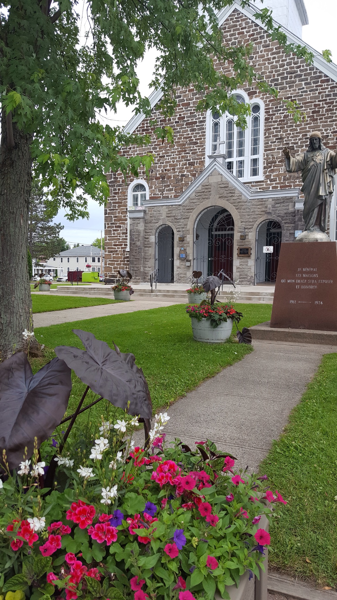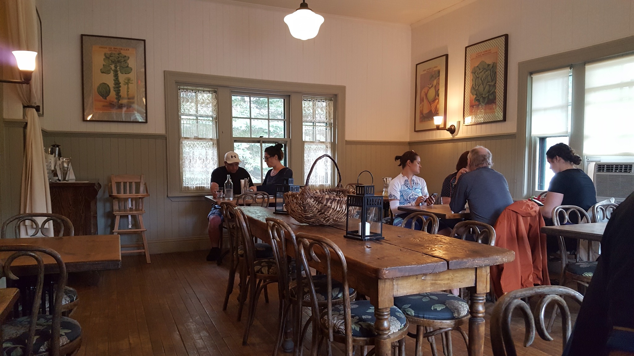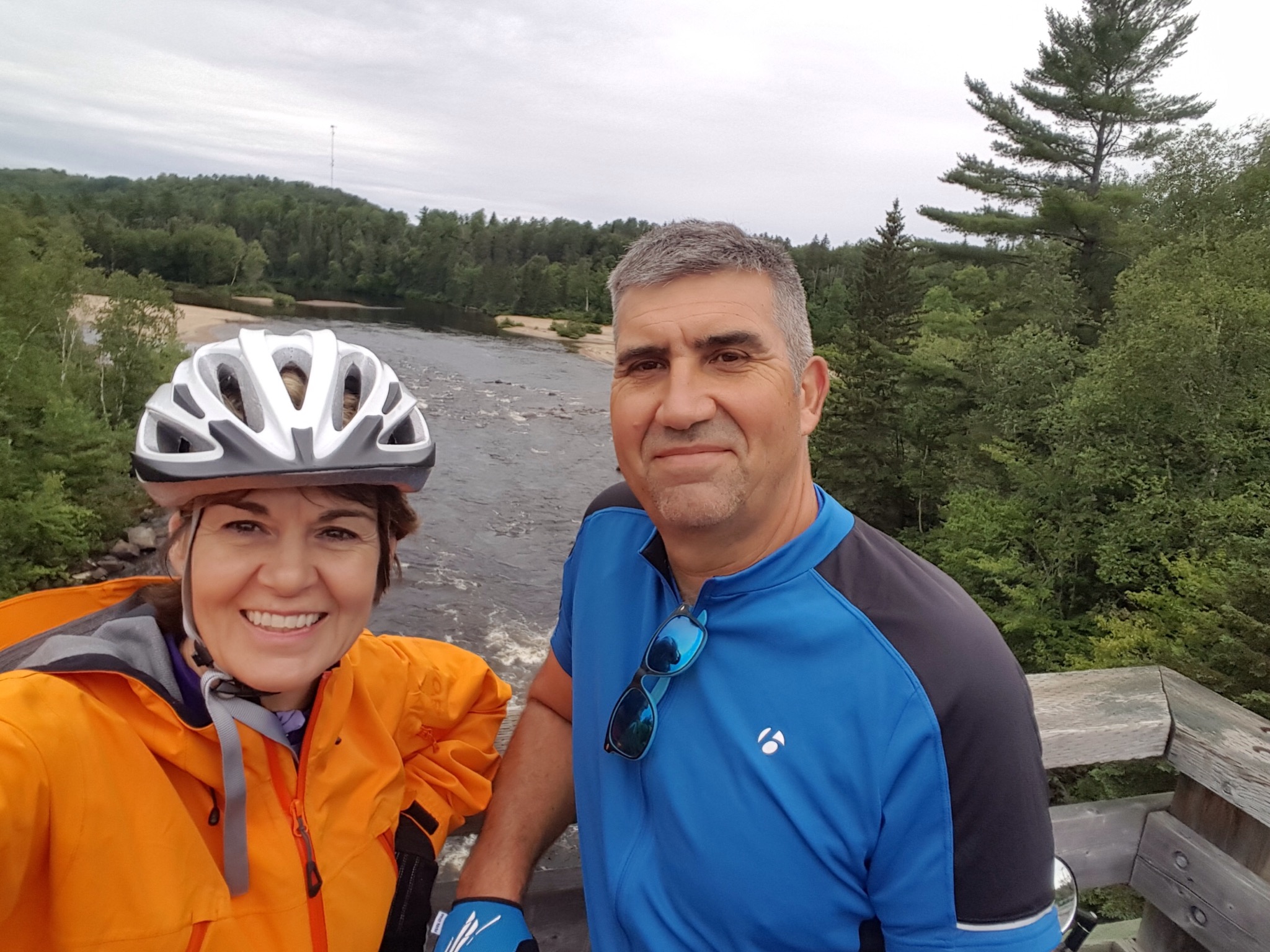 We covered a new section of trail today, making our way South toward Mont Tremblant. The rain was not bad, just a light misty drizzle, and it stopped all together around lunch time. We’d ridden about 7 or 8 miles when we came upon a historic train depot. Many of the original depots still remain along the old rail line, and the ones that do, have been repurposed for folks to enjoy today. They are beautiful on the inside and on the outside. We’ve peeked into several so far, and they always have big hanging baskets of flowers hung under the eaves, and the inside of the depot remains mostly unchanged. Hardwood floors and old hardware still in place. Some are used as museums, telling a little about the local community, some have restaurants or cafes and some have displays of artwork by local artisans.