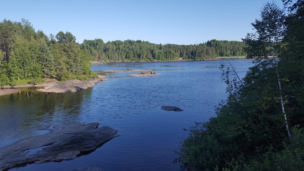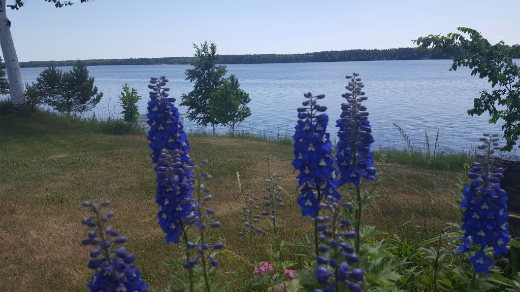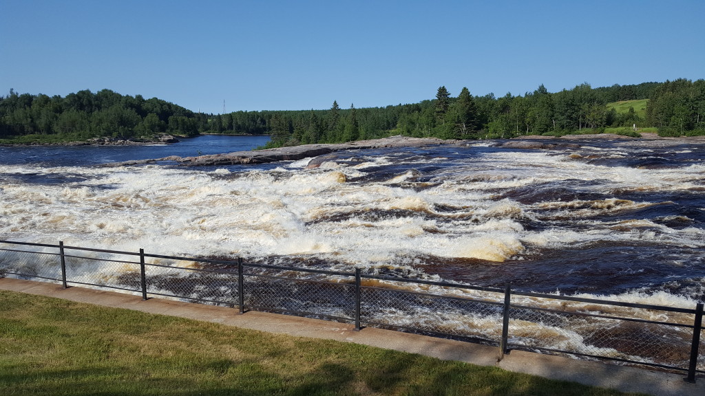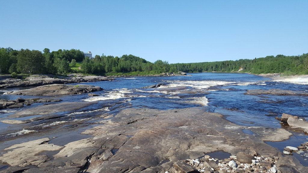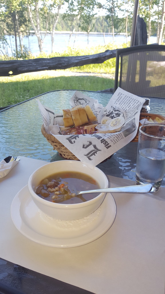 We ate dinner at the restaurant on site in the main building, and it was delicious! We ate outside overlooking the river. I ordered salmon and Jimmy ordered walleye. We started with a bowl of warm Gourgane soup again, which we will really miss once we return home. We could not resist another slice of blueberry pie for dessert, and I think it’s the best pie we’ve eaten yet! But we will try more tomorrow, so I will let you know!
