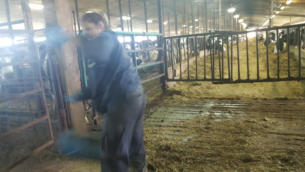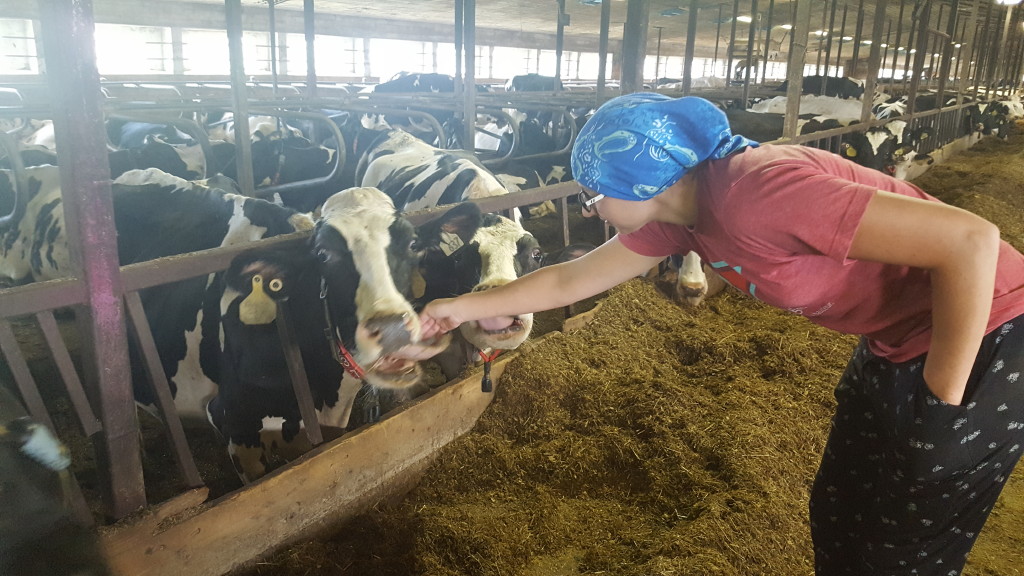 They told us he was born just one hour ago! It was fascinating and the two women were so sweet. I knew we were taking them away from their jobs, but they were very thorough in their tour. At one point, we needed to cross a wooden boardwalk to access another section of the huge barn. The older woman, who did not speak English, held up her hand for us to stop. She then picked up a shovel and began shoveling off the wet wooden slats which naturally, had a light covering of manure. Once the slats were  clean, she spread out fresh hay for us to walk on. She would not let us cross the 8 foot span of boards and get our shoes dirty! It was such a thoughtful gesture.