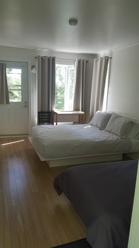We arrived in Sainte-Monique and found our place of lodging with no problem. It is called Auberge Ile de Repos, and houses a campground as well as cabins right on the beach with volleyball court, fire pit and a beautiful croquet court.