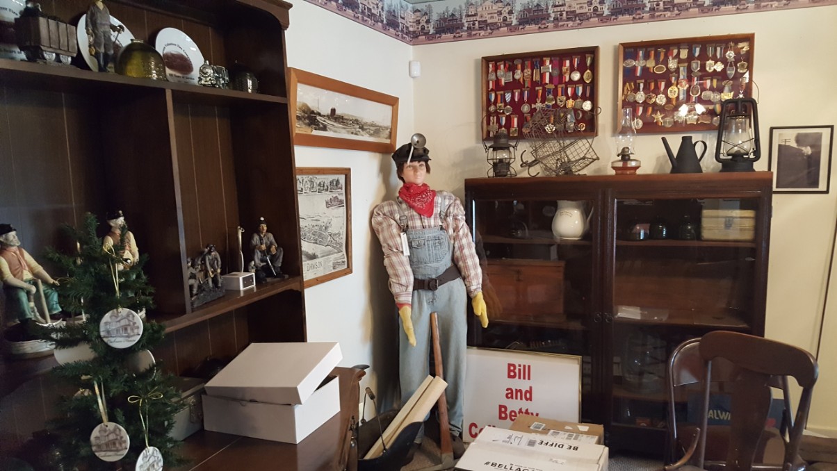 The building was much bigger on the inside than it appeared to be on the outside. There were rooms full of old photos of the town and buildings, old signs and posters, a room dedicated to the history of the coal mining era, a school room, a room full of Indian arrowheads and artifacts, old wedding dresses and evening gowns, old hand written ledgers and record books from businesses that used to be in the town during it’s heyday. It was all very interesting.
