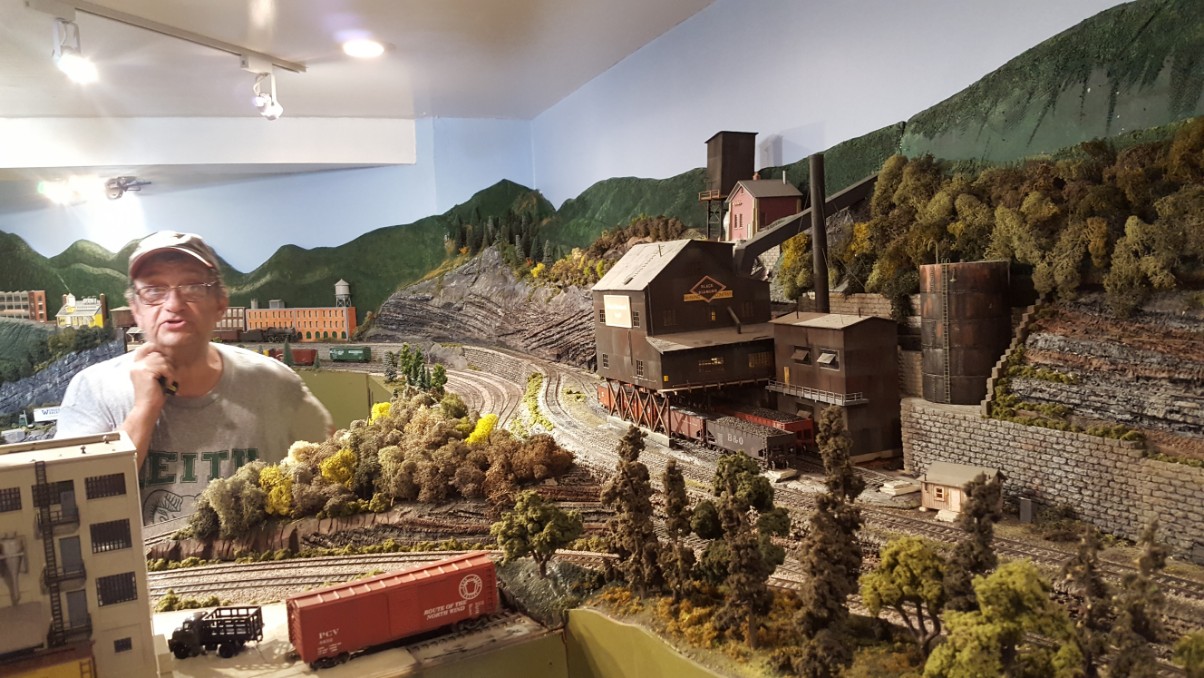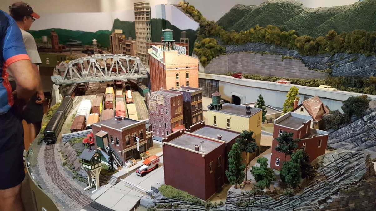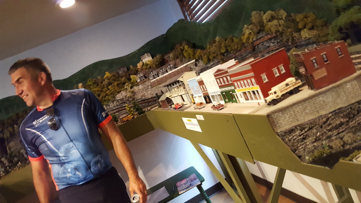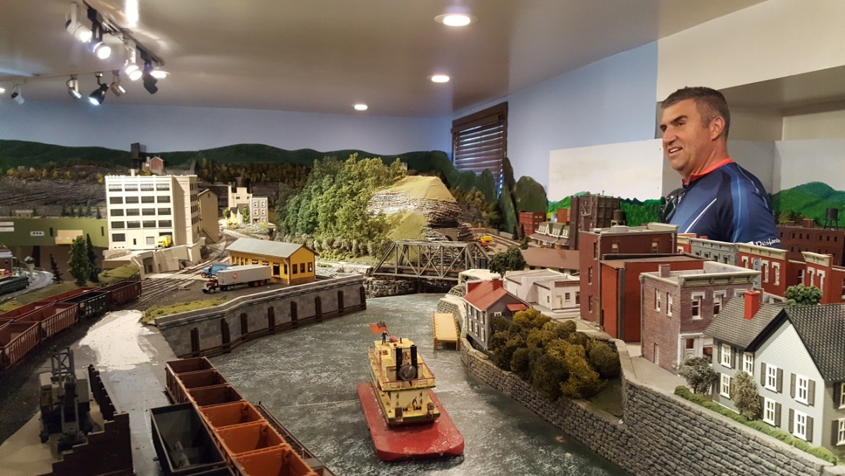 Then we reached the room that contained the piece de resistance. A whole room full of the most amazing model train set I’d ever seen. It was a beautiful work by a gentleman from Gaithersburg, MD. Sam Powell had built the model railroad piece by piece in his basement over a period of years! Sadly though, Mr. Powell passed away suddenly in January of 2016 while shoveling snow. His family searched for a museum in the Southwest Pennsylvania area to become the new home of his masterpiece. Since the little town of Dawson was in the area from which Mr. Powell drew inspiration in designing his model railroad, the gift was offered to them.